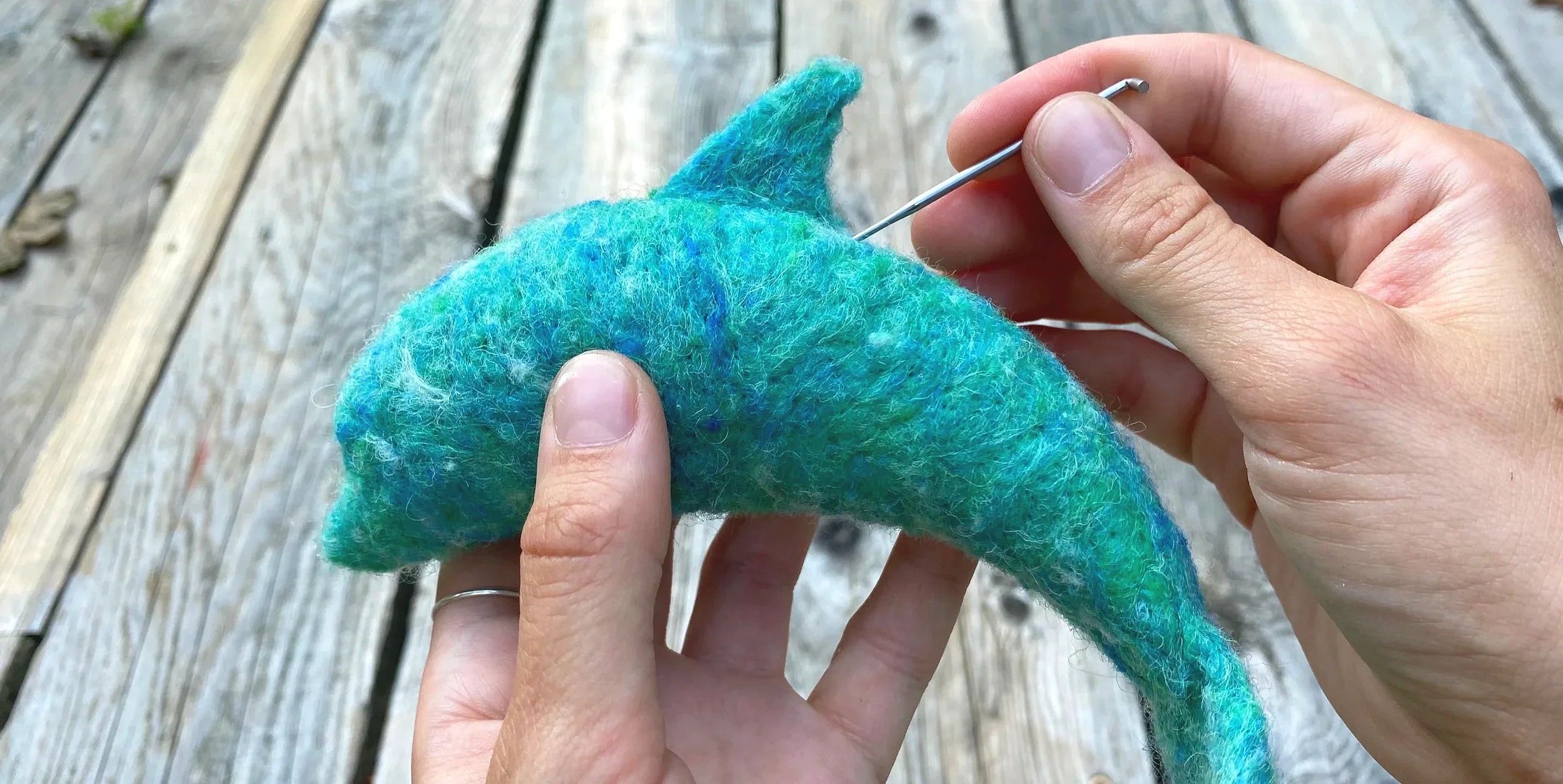 Needle felt at different angles if you're working on a sculpture. You want to be felting towards the center of the sculpture so the fibers don't start poking out the other side.